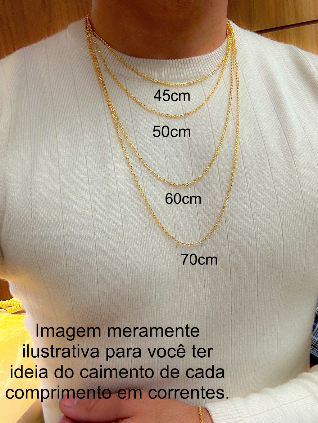 60 cm - corrente longa ( Na dúvida? Esse é o comprimento mais procurado para homens).