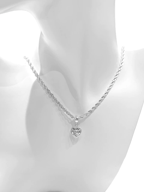 MODELO: Cordão baiano com pingente coração de zircônia em semi joia folheada prata leve.